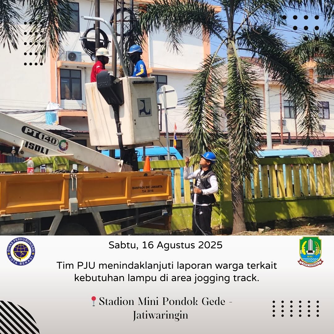Tim Pju Menindaklanjuti Laporan Warga Kebutuhan Lampu Di Area Jogging Track.