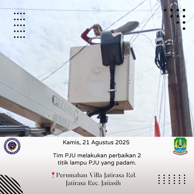 Pada hari Kamis 21 Agustus 2025 Tim PJU Dinas Perhubungan Kota Bekasi telah melakukan perbaikan 2 titik lampu PJU yang padam.